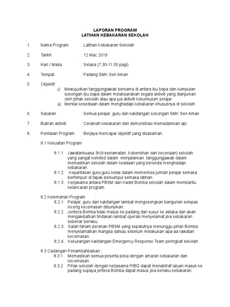 Doc Kertas Kerja Program Kebakaran Sekolah Zamer Rahman Academia Edu